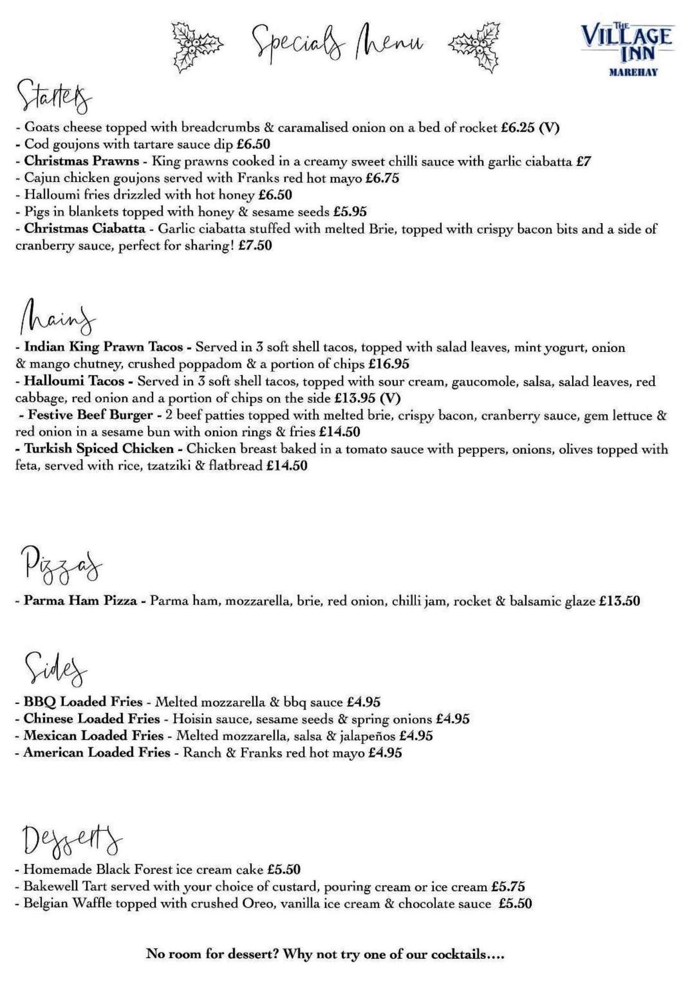 Email for pre-orders: info@villageinnmarehay.co.uk